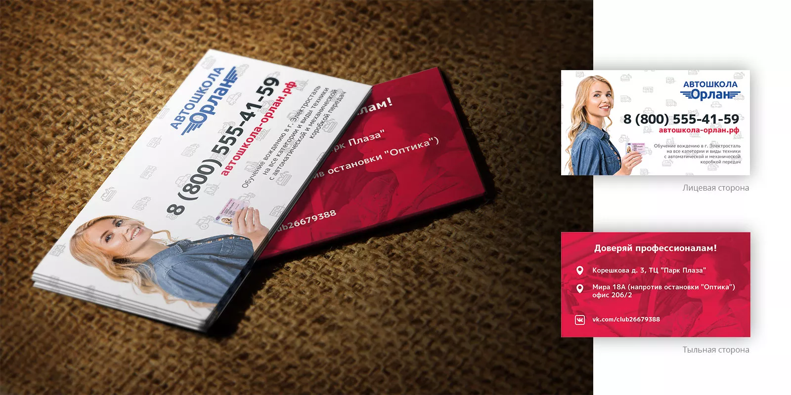 Разработка рекламных визиток автошколы «Орлан» в Рубцовске